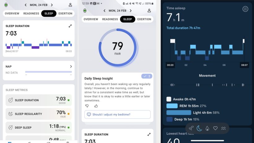 The heart rate figures captured during sleep weren’t abnormally high, similar to Garmin’s figures.