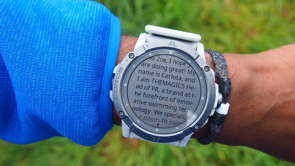 That screen does support touchscreen functionality, but it’s a slower, haptic-style feedback when you swipe through menu screens. You need to value the Vertix 2S’s longevity and tracking to put up with these trade-offs in design.