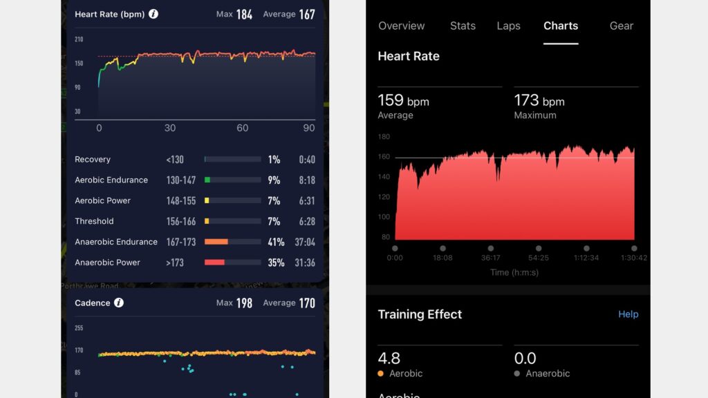 You also get training load and training status insights, recommended recovery times, and a running fitness score for runners. It will also generate race predictions from 5km to the marathon distance. These are delivered via Garmin-esque widgets, which offers glanceable information on your training. I felt right at home, and data-focused users will love the experience.