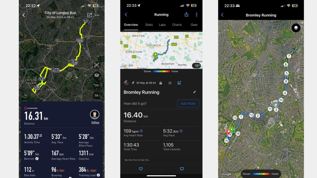 I found the experience comparable to the likes of Suunto, Polar and Apple (via third party apps) for mapping and navigation support – although I do feel Garmin is now ahead with its turn-by-turn navigation and modes like UpAhead and ClimbPro. As with so much of the Coros experience, Garmin just seems to offer marginally better executed features – but this time at the same price point.