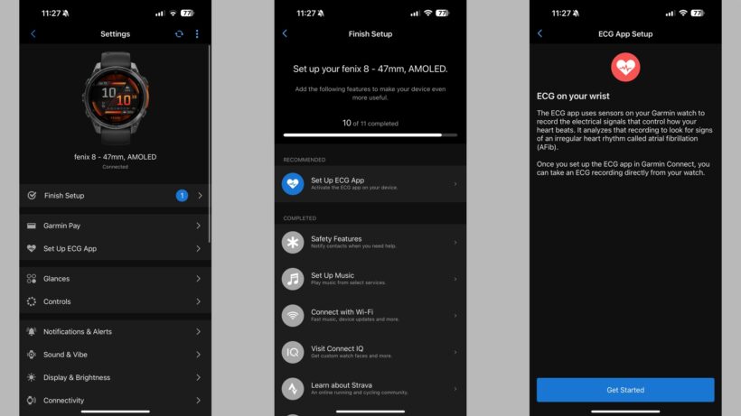 Currently, Garmin’s ECG functionality is limited to on-the-spot readings, which help distinguish between normal sinus rhythms and signs of atrial fibrillation (AFib).