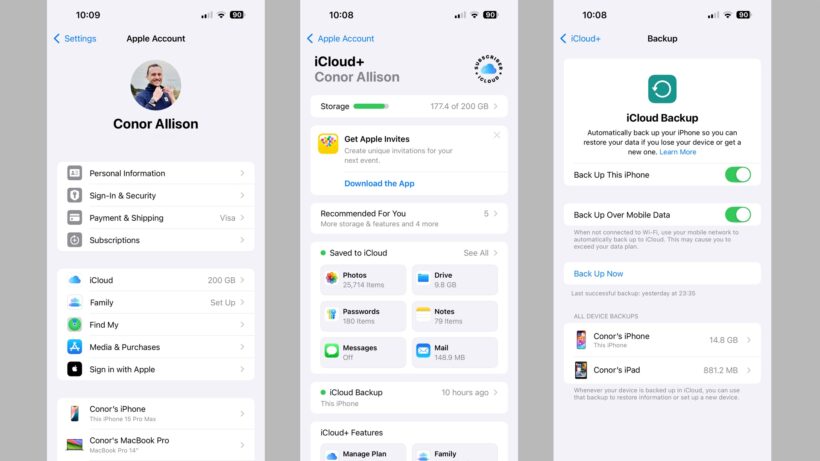 - Built-in app history – for example, your setup for Mail and Calendar