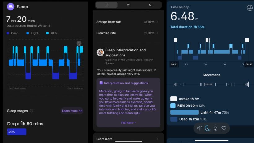 Sleep scores did tend to be more positive, while average heart rate data (again) was higher than our other test tracker. To provide more context around the tracked data, Xiaomi has also included some sleep suggestions and analysis powered by the Chinese Sleep Research Society. It explained why we should go to bed early, and the risks associated with a lack of sleep time.