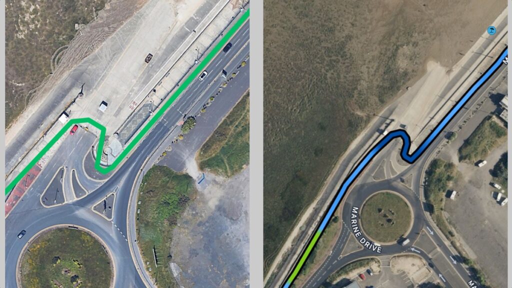 The GPS tracking worm does perhaps show how this occurs, too, with Garmin’s line incredibly tight on corners (as shown) while Samsung’s tends to track in straighter lines.